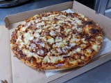 This spicy little guy starts with a hot sauce base, our signature cheese blend and then topped with some delicious pastrami and jalapeƱos. Add a side of Blue cheese to round out the experience.