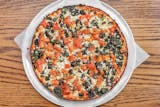 Onions, peppers, mushrooms, broccoli, fresh tomato, olives, garlic & feta.